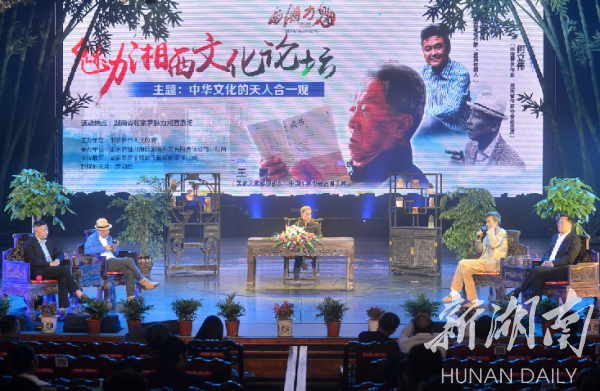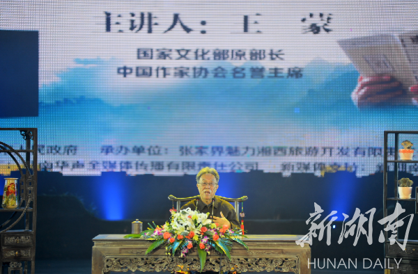 新湖南客户端10月27日讯 今天,“魅力湘西文化论坛”大幕在湖南张家界《魅力湘西》剧场开启。原国家文化部部长、中国作家协会名誉主席王蒙开讲“中华文化的天人合一观”,著名作家黄晓阳、何立伟担任首场论坛嘉宾,探讨湖南文化和湘西文化。