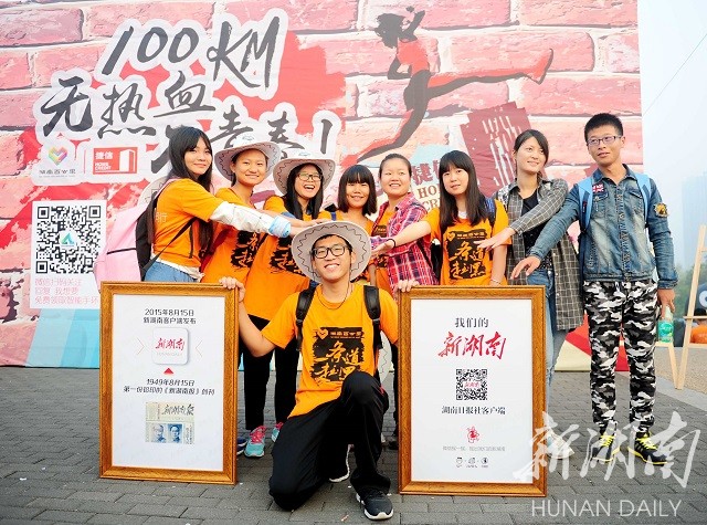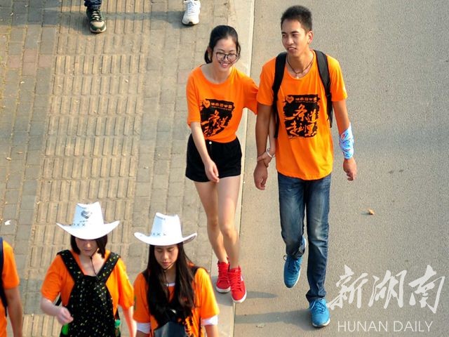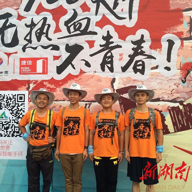 湖南工业大学大二土木系9位男生第一次参加百公里毅行,学生孙泓发说:“我们青春无敌美少男组,抱着玩的心态而来,但是一定会走到终点。”