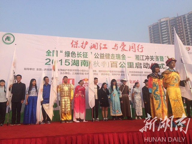 上午8点,2015湖南秋季百公里正式开幕。本次活动由共青团中央、全国保护母亲河领导小组办公室、共青团湖南省委、湖南省水利厅、湖南省体育总会、湖南日报社指导,由新湖南客户端、三湘都市报、华声在线网站主办,由湖南华声户外有限公司、湘潭走玩户外有限公司承办。