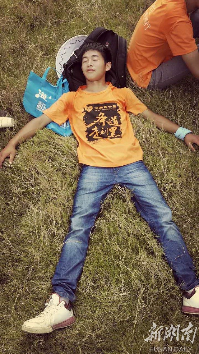 为了不连累同学,他让他们先走,自己慢慢坚持。他说:“我坚持自己走,到了极限,哪怕在终点前退出,也不后悔。”