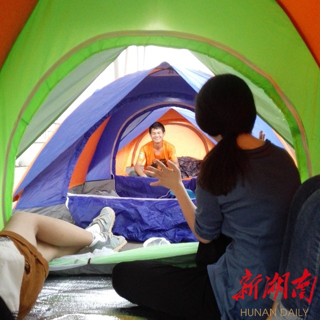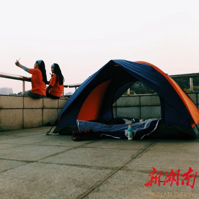 不远处,是四个来自湖南女子学院的大三女孩,三下五除二,不到五分钟就支好了两顶帐篷。