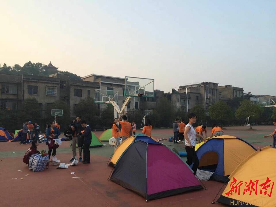 没关系,湖南工程学院的体育场上,帐篷已经支起。