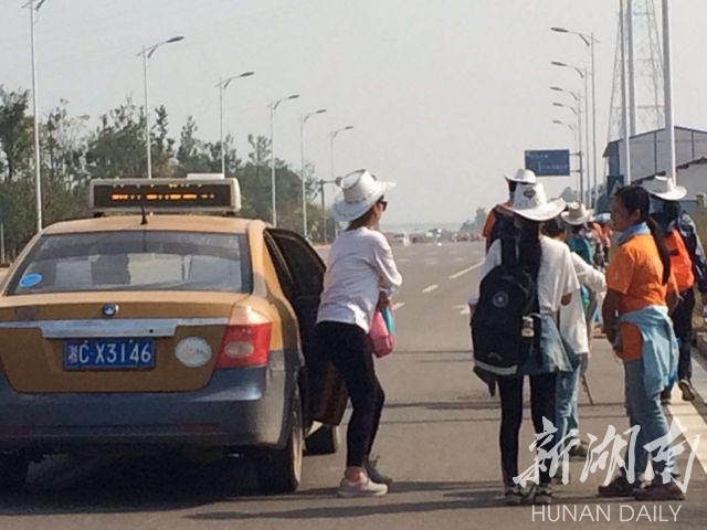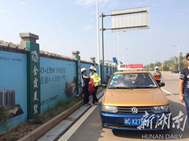 许多湘潭、株洲两地的出租车和摩的,沿途拉客。