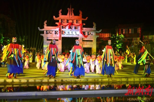 10月28日,国家非遗“苏仙传说”搬上实景舞台,《飞天·苏仙》在湖南郴州首演。这是国内首部由民间传说改编而成的大型山水实景剧,由国家一级编导余大鸣女士担纲执导。
