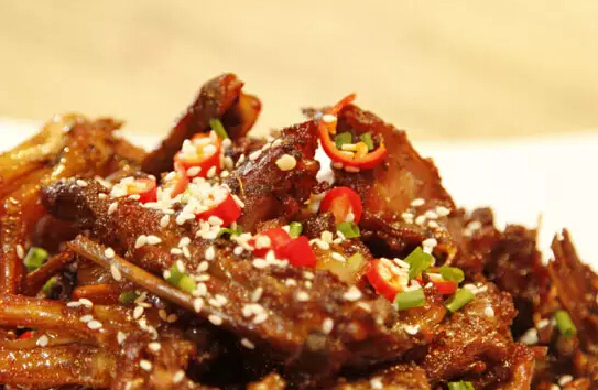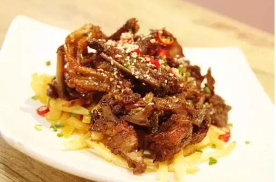 这道菜真正做到了色香味俱全。其颜色亮丽,看上去非常有食欲,鸭肉干而不柴,吃起来很是细嫩,一点也不腻,吃到口里更是香、嫩、麻、辣,吃一块后口留麻香,保证让你回味久久再配上点土豆条,真是让人停不下嘴(吃货们可得hold住!!!)