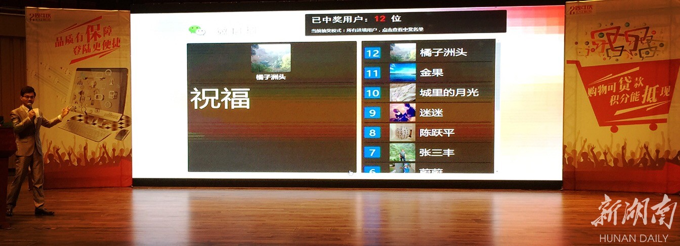 激动人心的时刻到了!现场的观众发送关键词“两周年”,并根据提示发布想说的话,参与了现场抽奖,观众想说的话也同步出现在大屏幕微信墙上。30名观众很幸运抽中此次奖品。众多嘉宾为融e购送出两周年祝福。