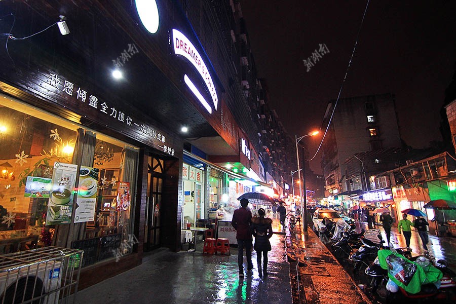 华灯初上,南华大学北门街道开始繁华起来。似乎每个大学都有这样一条汇集各种美食小吃的街道,被人戏称为“堕落街”。2015年9月1日,一家名为“梦想家”的咖啡厅就在这条街落户。