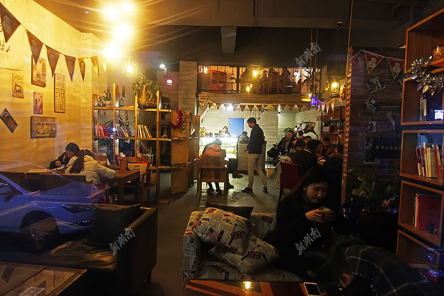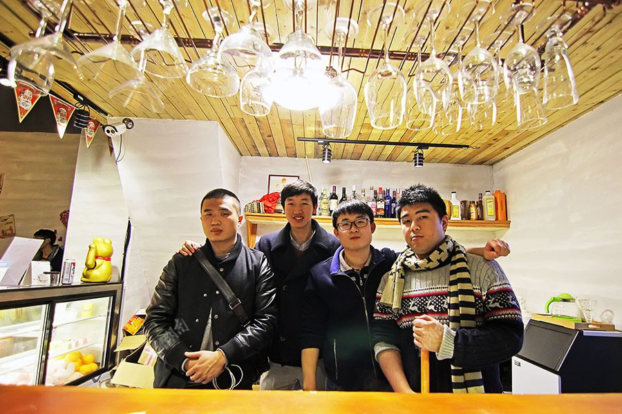 经过2个月的市场调研和一个多月装修试营业、 这家咖啡厅已步入正轨,平均每天大约可以光顾60多位顾客。透过橱窗看店内,从书橱到摆件都显露出浓浓的文艺风格,但令人惊讶的是,咖啡厅的四个合伙创始人都是被人视为比较木讷的理工科大男生。