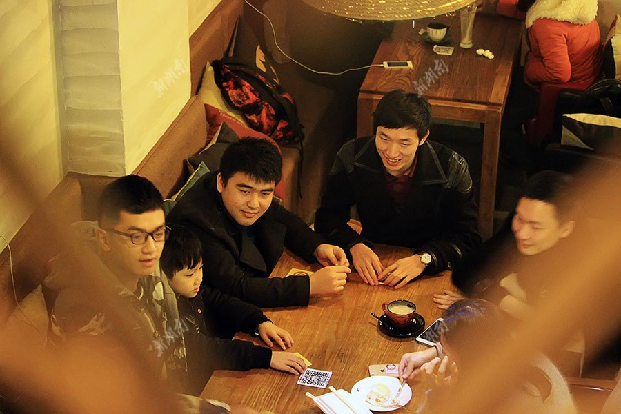 1月5日,工作闲暇之余,四人会和老顾客们坐下一起玩纸牌游戏。“我们的初衷是完成自己创业梦的同时也帮助别人完成梦想,所以叫‘梦想家‘,这体现在我们为其他创业者提供一些创业信息,也体现在为所有有梦想的人提供一个清雅的环境。”