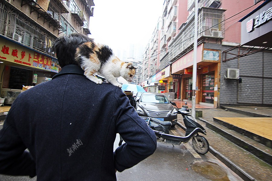 1月11日,蒋旭彤带着小猫,在冰冷的冬日清晨里行走,像一次通往未知的探索。