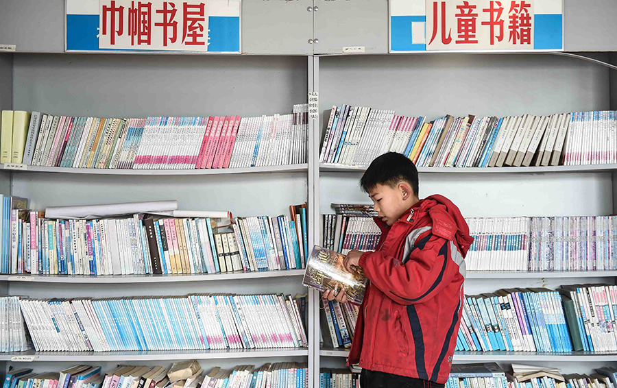1月31日,长春市鹿乡镇鹿乡村11岁的留守儿童王一竹在“留守儿童之家”翻看课外书。他的爸爸在奢岭镇负责墓地维护,春节期间需要值班,无法回家,他只能和妈妈、姥姥一起过年。在他眼中春节是最重要的日子:“我的心愿是所有的家人都回来过年。”