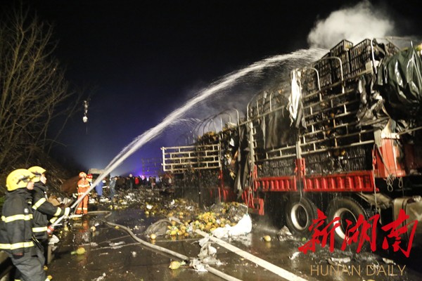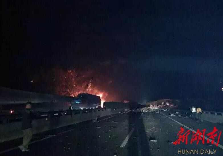 京港澳高速汨罗段货车爆炸事故救援取得进展