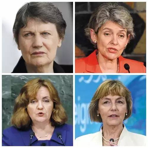女候选人:按顺时针顺序分别为海伦·克拉克、伊琳娜·博科娃、韦斯娜·普希奇、纳塔利娅·盖尔曼