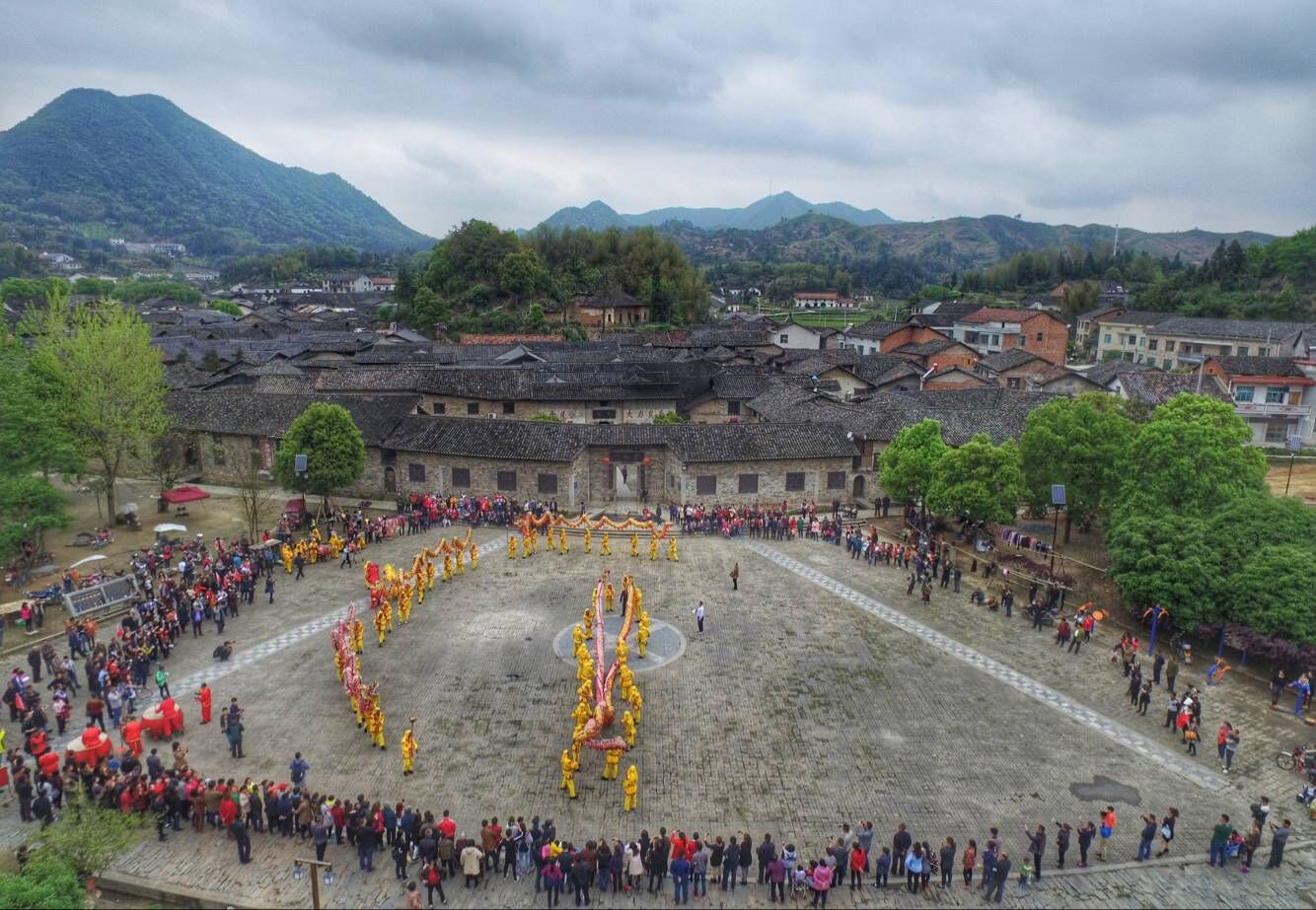 (4月7日,岳阳县张谷英镇,游客在张谷英古村门口观看舞龙舞狮表演。 新湖南客户端记者 童迪 摄)