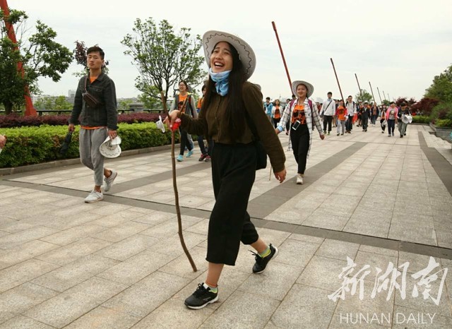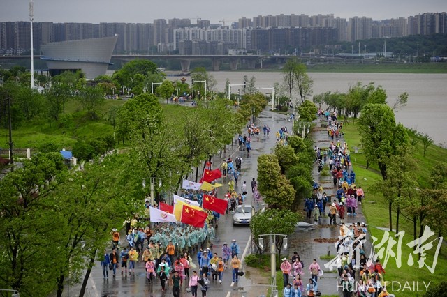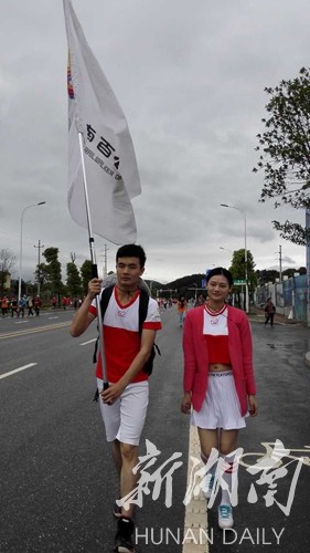 “我在路上不能休息,大家都要跟着旗子走的。”中南林科大的学生沈婷是旗手之一,平时热爱运动的她对走完路程很自信。