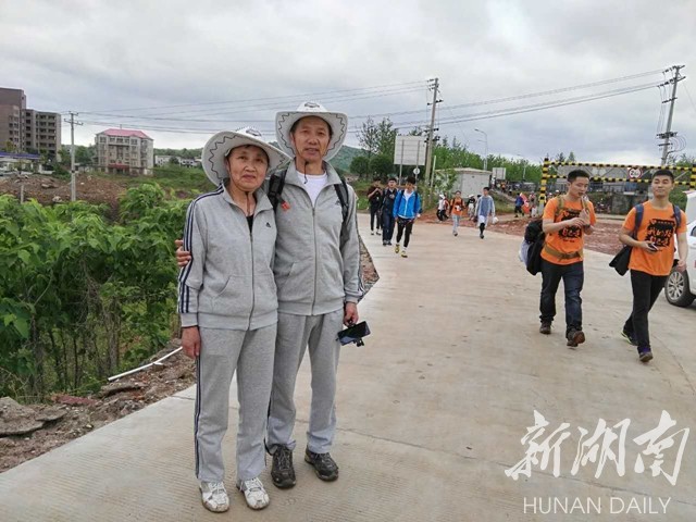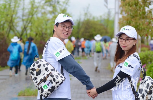 湖南百公里的主要参与者是大学生、年轻白领,但也不乏一些年长的挑战者。赵伟和史秀珍是来自邵阳的老夫妻,今年分别是61和62岁,此次专门来参加湖南百公里的活动。赵伟介绍,他平时就经常骑单车、徒步,以前走过50公里,花了6个多小时,虽然这次湖南百公里长一些,但还是自信能够走完全程。"年轻人可以,我们也可以。"