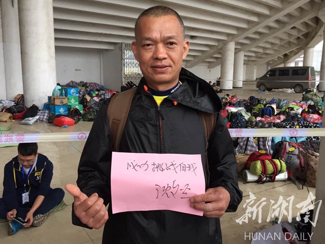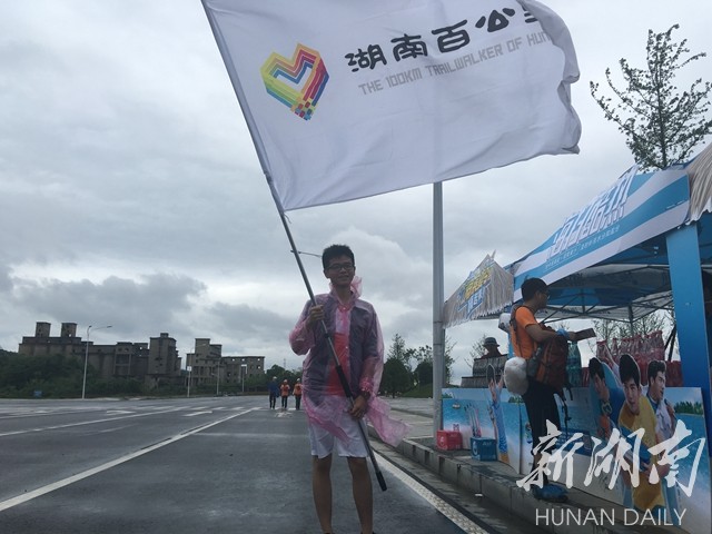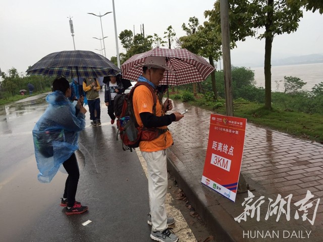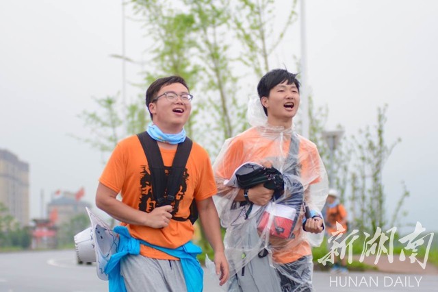 “新疆到湖南的3500公里我都来了,百公里我会怕吗?”来自新疆的迪力努尔·苏立坦微笑着说,自己已经走了大半的路程,剩下的都是小case,虽然下着雨,但是一定会走到终点的。
