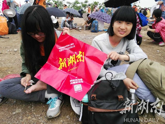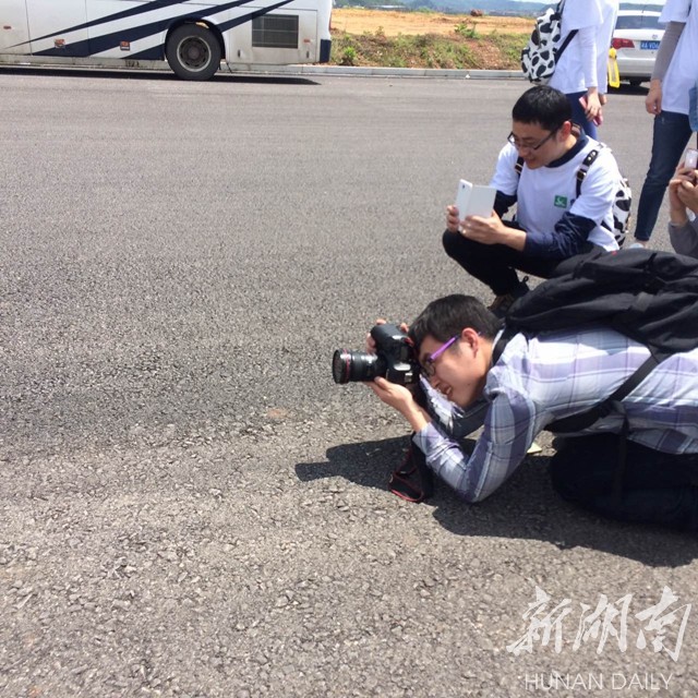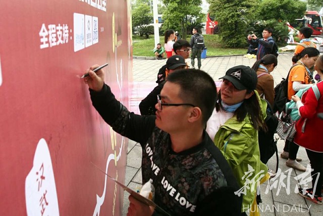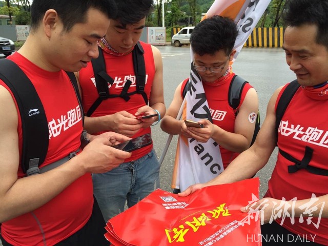 听记者说新湖南在搞直播,他和小伙伴们掏出了手机,“我们扫一扫,让没来的朋友感受现场火热,见识毅行者勇往直前的风采!