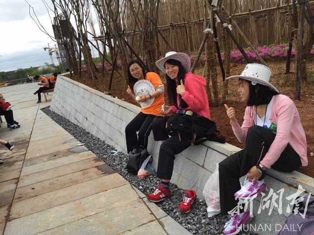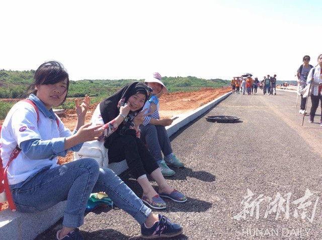 “同学打电话要我坐车回家,我肯定是拒绝啦!”湖南生物机电职业技术学院的毛丹抵达终点后就席地而坐了。她昨天脚磨出血后,把带来的十多个创口贴都用完了。