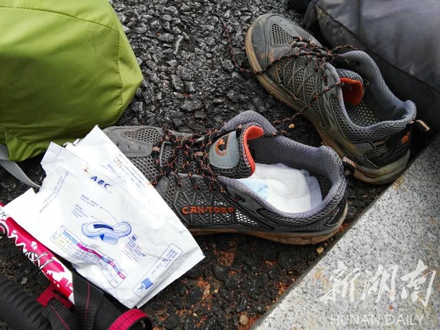 “人生有些事情,只会做一次。我们就想挑战一次自己。”昌姑娘说,“我们只是稍微休整一下,别看我们三个弱女子,我们一定会坚持到底的!”她的脚上,开始有打水泡的迹象。她特点提醒,如果脚出现不适,可以涂点凡士林,贴个创可贴。随即,三位姑娘重新踏上征程。