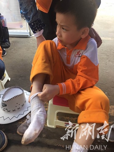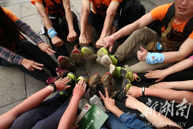 “哥哥帮我放了一些纸在鞋子里面,舒服多了。”10岁的刘洋晨和哥哥一起走了10多公里,练过跆拳道的他笑称可以锻炼脚力,虽然有点累了,但一定会坚持下去。哥哥刘霖是特意从株洲过来参加活动的,平时就爱好户外的他也把弟弟带上了,希望可以兄弟齐心一同完成挑战。