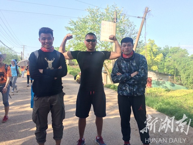 “我们是湖南一师的毅行三剑客。”17日上午,来自湖南一师的三位“女汉子”摆出奥特曼和超人的pose,表示既然走到了第二天,就不会轻易放弃。“株洲体育中心,我们来啦!”