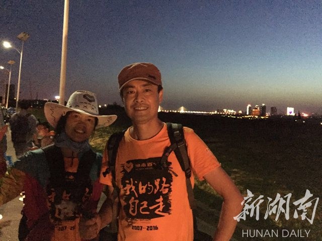 自从加入徒步这一运动,这两年谭永和每天坚持走30公里,风雨无阻。每天早上5点50分,谭永和准时开始一天的徒步计划,早上10公里,上午10公里,下午10公里。这次湖南百公里,谭永和预计10个小时就能走完,“我搞一口气走完百公里,老伴还做了大餐犒劳我呢!”