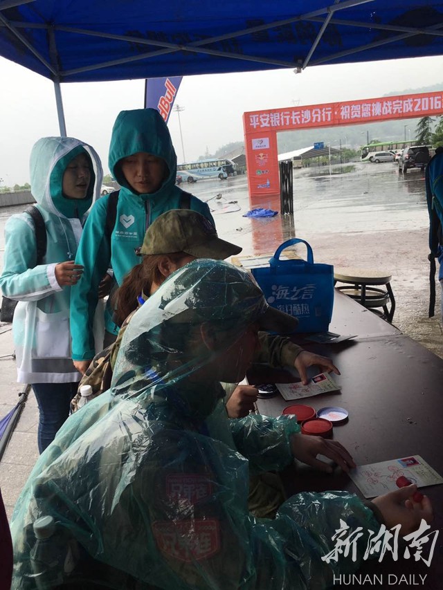 本次湖南百公里走得不容易,16日徒步期间,天气由雨转晴,选手先被雨淋后遭暴晒,经受双重考验。17日,天气一早就由晴转阴,最终或大或小下了近一天的雨,几乎所有的选手都淋湿了衣服和鞋子。到最后3名挑战者抵达终点时,共有8400余名选手完成挑战,拿到赛事组委会颁发的毅行证书。