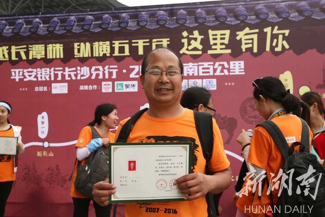 当60岁的毅行者孔小平,从工作人员手中接过“湖南百公里最具毅力挑战者”荣誉证书之时,可能还没有人意识到,本次已是他第六次参与湖南百公里,同时也是第三次担当湖南百公里的旗手。他告诉记者,每次参加活动都有一种穿越时空隧道,回到年轻时代的感觉,对于湖南百公里,他高兴地直呼“已经上瘾了!”