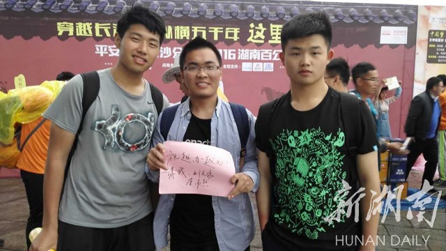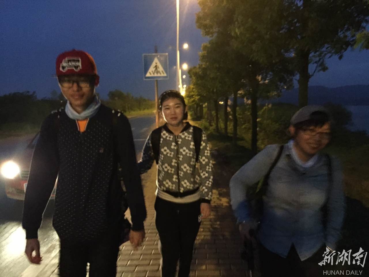 “也想过要上车,但既然来了,就一定要真正走过百公里。”庞博、潘凯、叶凯萱,都来自衡阳南华大学,他们是百公里毅行最后三位勇士。