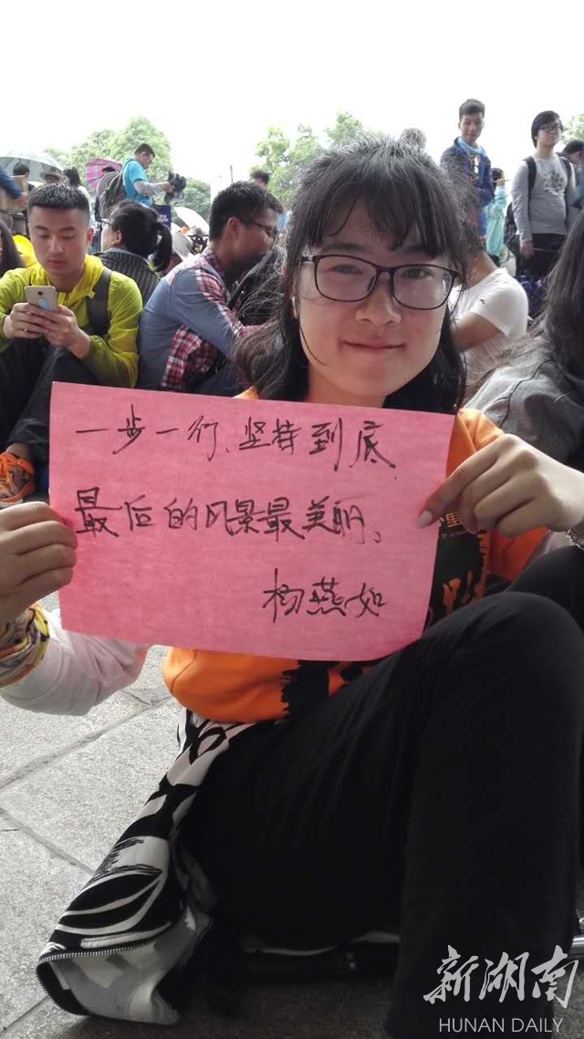 “我们学校报名太火爆了,当旗手有更高的要求,我肯定没问题。”沈婷告诉记者,平时她就热爱运动,正好湖南百公里是周末,她就果断报名来了。后面的小伙伴,美女旗手在前面带路,大家快跟上哦!