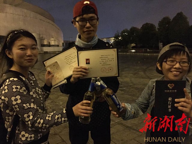 来自衡阳南华大学的庞博、潘凯、叶凯萱是最后抵达终点的3名挑战者。因为有两人受伤,他们的前行速度缓慢。虽然组委会的收容车一直跟在身后,但3人一致决定坚持到底,“我们都大四了,不想留下遗憾!”鉴于坚持到底、永不放弃的精神,3人破例获得毅行证书,完成夙愿。