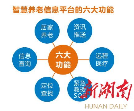 该信息平台目前主要有"居家养老、资讯推送、远程医疗、信息查询、定位查找、紧急救援SOS"等六大功能。韶山路社区康乃馨智慧养老信息平台是社区养老服务创新提质的产物。