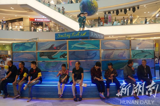 进入商场大门,迎面而来的便是为此次开业特别准备的著名插画师几米的作品《星空》的创意置业展,高高悬在中庭顶端的举行鲸鱼抹杀了无数菲林。而只需绕着梅溪新天地逛上一圈,单单是一些单体项目的造型设计,就已经足够吸引消费者眼球。据步步高相关负责人介绍,项目内诸多别出心裁的设计均出自于名家之手,如梅溪书院和万达影城便是由香港闻名设计师罗灵杰操刀。