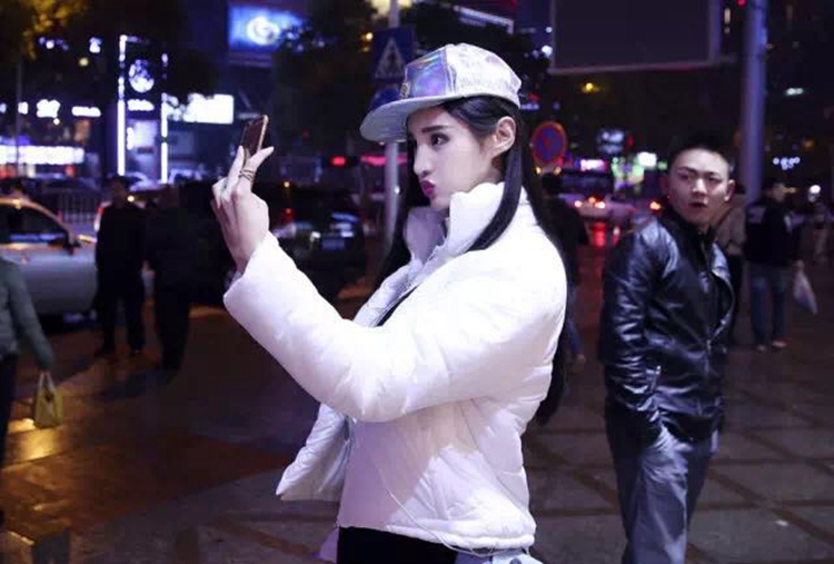 4月7日晚,逛街的吴春怡有着相当高的回头率,即使自拍也会让路人驻足。
