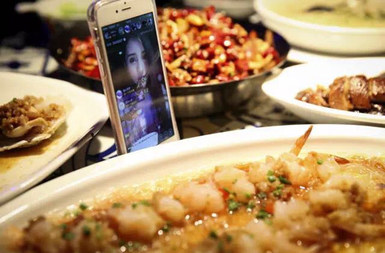 6月6日,辛苦拍摄了半天,吴春怡就在摄影工作室稍显简陋的食堂吃饭,借助自拍杆,她可以随时在直播平台上做网络视频直播。
