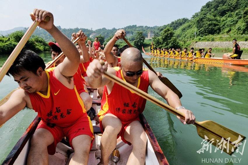 6月6日至7日,位于孙水流域娄星区万宝镇垭古村傅家湾、新柏水域,鼓点铿锵,龙舟竞渡,鞭炮声、呐喊声、划浆声交杂在一起,一年一度的端阳划喜船民俗文化活动吸引了无数乡民。