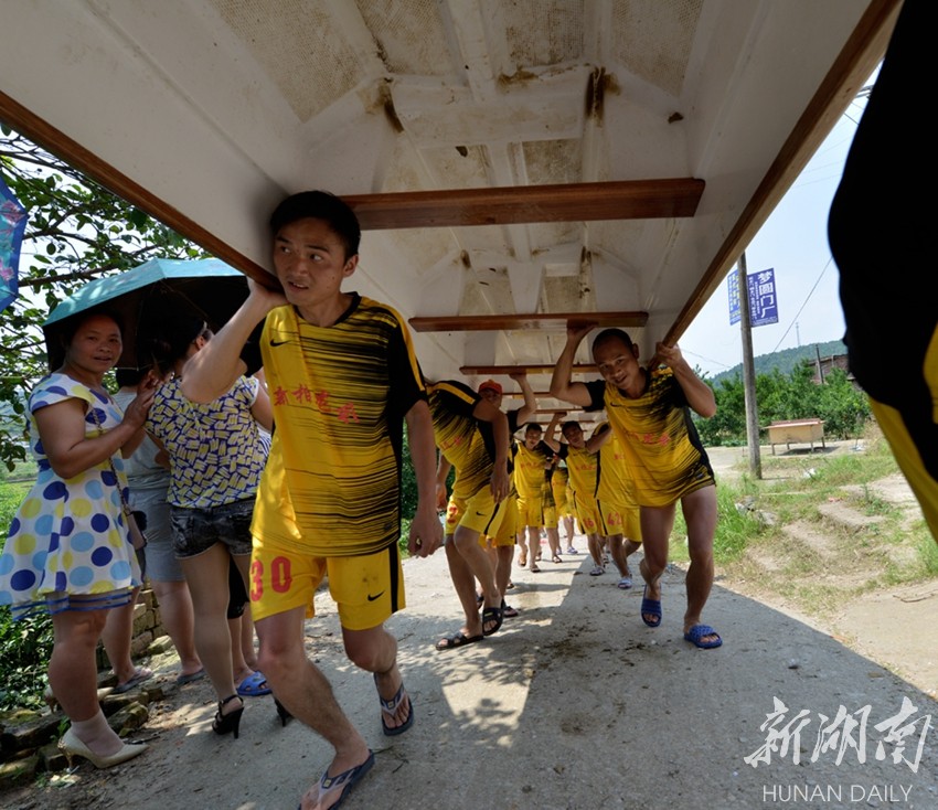 划喜船活动当天下午,垭古傅家湾龙舟队便和前来助喜的新柏龙舟队便抬船去上游去进行6月7日与邻村龙舟队的龙舟竞渡。