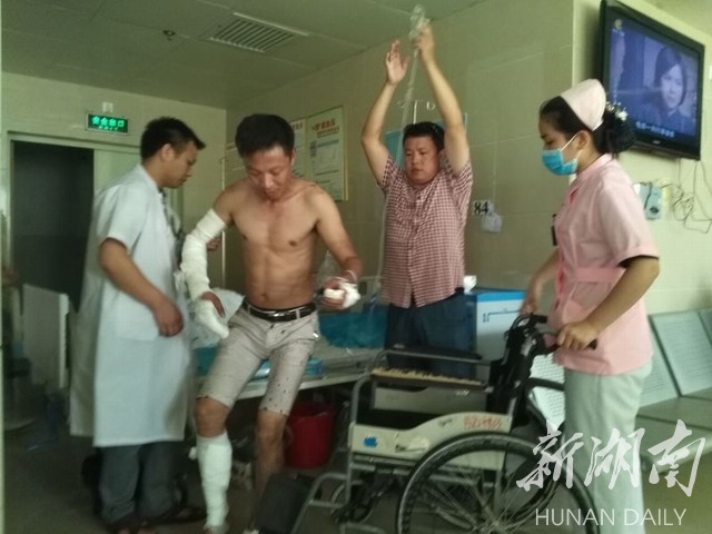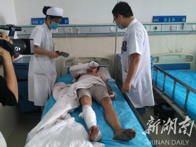 躺在医院床上的刘小军说:“从事故现场转移到宜章县人民医院,路上有医生专门处置,到医院后几乎没什么耽搁,上药消炎等很到位,有专门的医生、护士看护,医院救治很及时。”刘小军右手、右足裂伤,小面积烫伤。从死里逃生出来的龙永红女士,髌骨骨折,右脚下被包扎得很好,伤情稳定。下午家属从长沙、耒阳赶过来看望她时,龙士女安慰他们说:“幸好医院及时处置,恢复会比较好,你们不用太担心。”