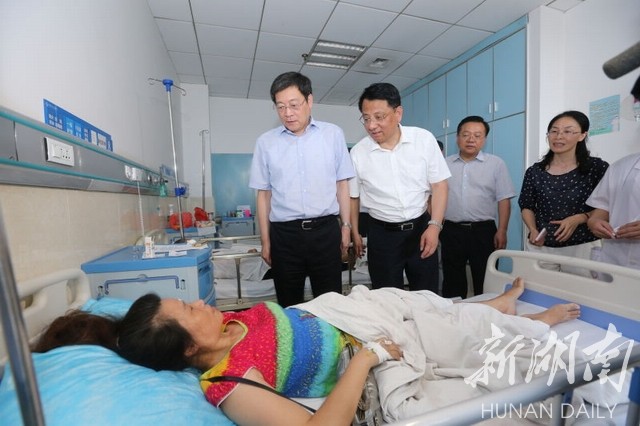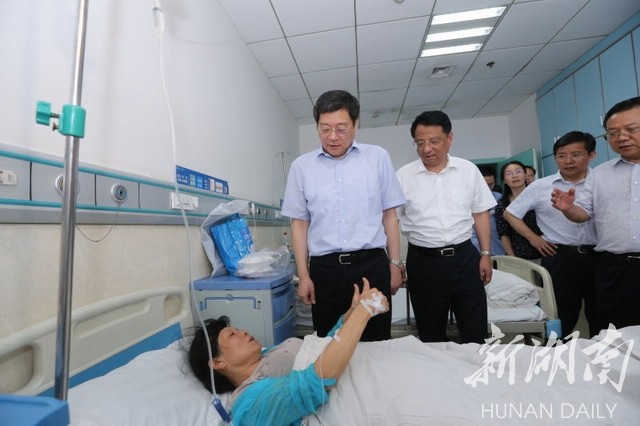 6月26日,省委副书记、省长杜家毫,省委常委、副省长、公安厅长黄关春等看望慰问受伤人员。(新湖南客户端记者 罗新国 摄)