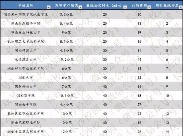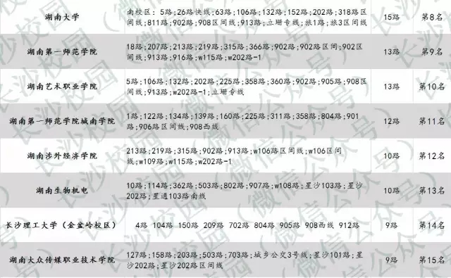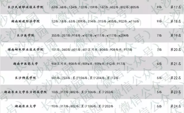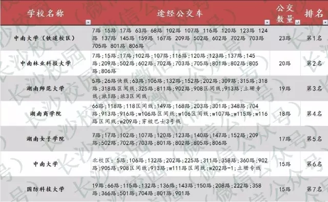 长沙公交出行最便利高校排行榜
