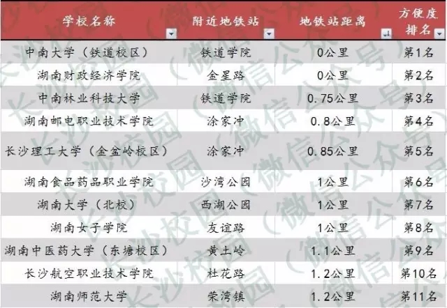 长沙地铁出行最便利高校排行榜