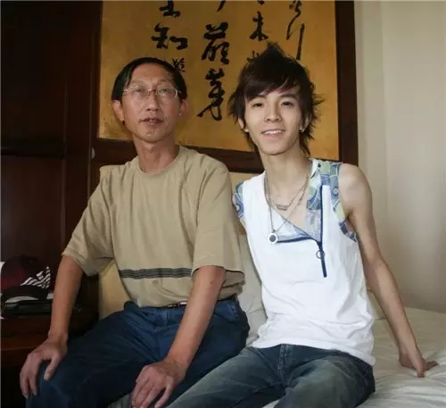 韩寒高二时在上海市巨鹿路《萌芽》编辑部参加活动时与李其纲合影