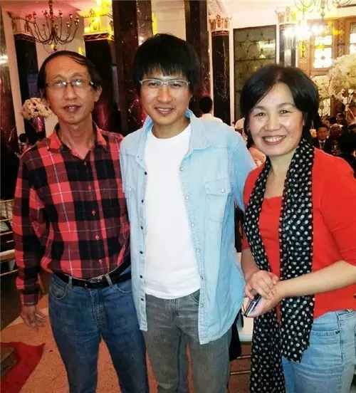 △李其纲、徐芳(右)与韩寒(中)在那多婚礼上