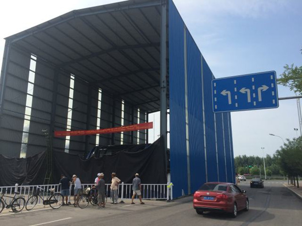 5日,记者来到位于河北省秦皇岛市北戴河区车站村的“巴铁”测试路段。和几天前路面测试时相比,没有了围观的人群,测试车“巴铁1号”静静停在巨大的蓝色工棚内,四周竖起黑色的幕布,一些穿着有“巴铁”字样服装的工作人员进进出出,身形忙碌。