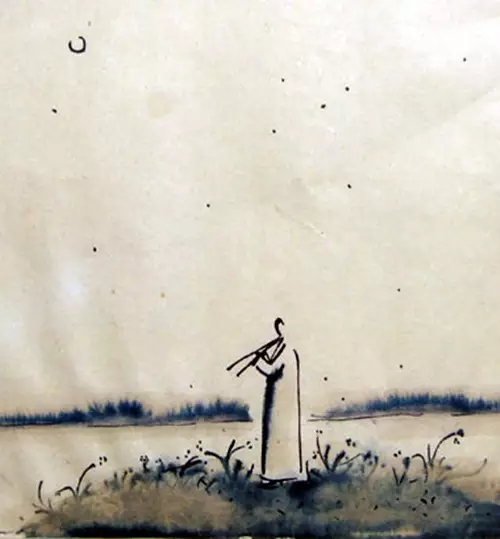 那些画,乍看上去有些丰子恺的影子,实际在用笔及意趣上,与丰氏相去甚远!丰氏风格在中国画坛上,不可无一,亦不可有二。亦步亦趋,拾人牙慧的事,吾人虽根性驽钝,也是断断乎不会干的。十数年前,曾看过一本旅德女版画家周仲铮的自传《小舟》,郁风曾为其作序,内附十余幅作者本人所作的木刻插图,风格粗放,稚拙,充满童趣,有西南民间纸马的风格,我极喜爱。我后期那批带有遗老遗少味道画中,在人物造型及用笔上,多取法周氏,但属“巧取”,旁人是断不会在我的画中觑得一丝周奶奶木刻的影子的。其实,高明的艺术家都是技艺精湛的窃儿。行窃时,敛心静气,不动声色。得手后,不留痕迹,翩然远遁。即使那“第三只手”被人抓住,也可以效法阿Q,大不了解释一句:“窃,不能算偷嘛!”生吞活剥,描红式的照搬,实属笨伯行径。