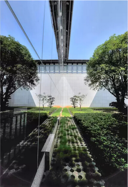 为提高建筑消防等级,利用原有山体护坡,在南侧增设联系东、西广场的消防通道,以此方便东西广场的联系,也为施工时提供便道。保证了韶山山形地势脉络的延续,实现建筑与自然的和谐统一。