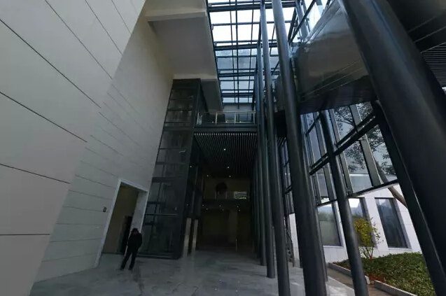 将原五室改造为主要交通厅,通过连续的直跑楼梯、坡道及电梯组成合核心交通,使观众可以便捷的到达到新主展厅。主展厅前部是在拆除原杂物间、商店、六、十一、十二、十三、十四室及其之间的庭院,在保持原有建筑用地范围不变的基础上扩建而成,展厅净高9m、面积为1600平方米。