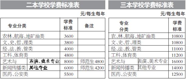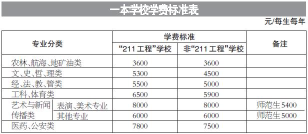 本报长沙讯 一本“211工程”学校工科、体育专业,每年学费6500元,二本学校工科、体育类专业,每年学费4800元,三本学校工科、体育类专业,每年学费11200元。一本高校不实行热门专业学费上浮政策,二本高校热门专业原则上按专业学费标准上浮30%,但不得超过“非211”一本高校同类专业学费标准。