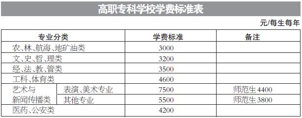 而在高职专科学校学费标准中,也有一些“特价”专业,保险职业技术学院专科按5000元、本科按6000元执行。经批准招收的空中乘务、国际邮轮乘务管理、港口与航运管理按8000元执行。经批准招收的动漫制作技术、软件技术中游戏软件方向、影视动画按9000元执行。经批准招收的软件技术、计算机网络技术、铁道运输类、铁道装备类、城市轨道类按7800元执行。另外值得注意的是,高职专科院校工科、体育类含卫生、服装、旅游、美容等应用技术类专业,经法教管类含其他专业。